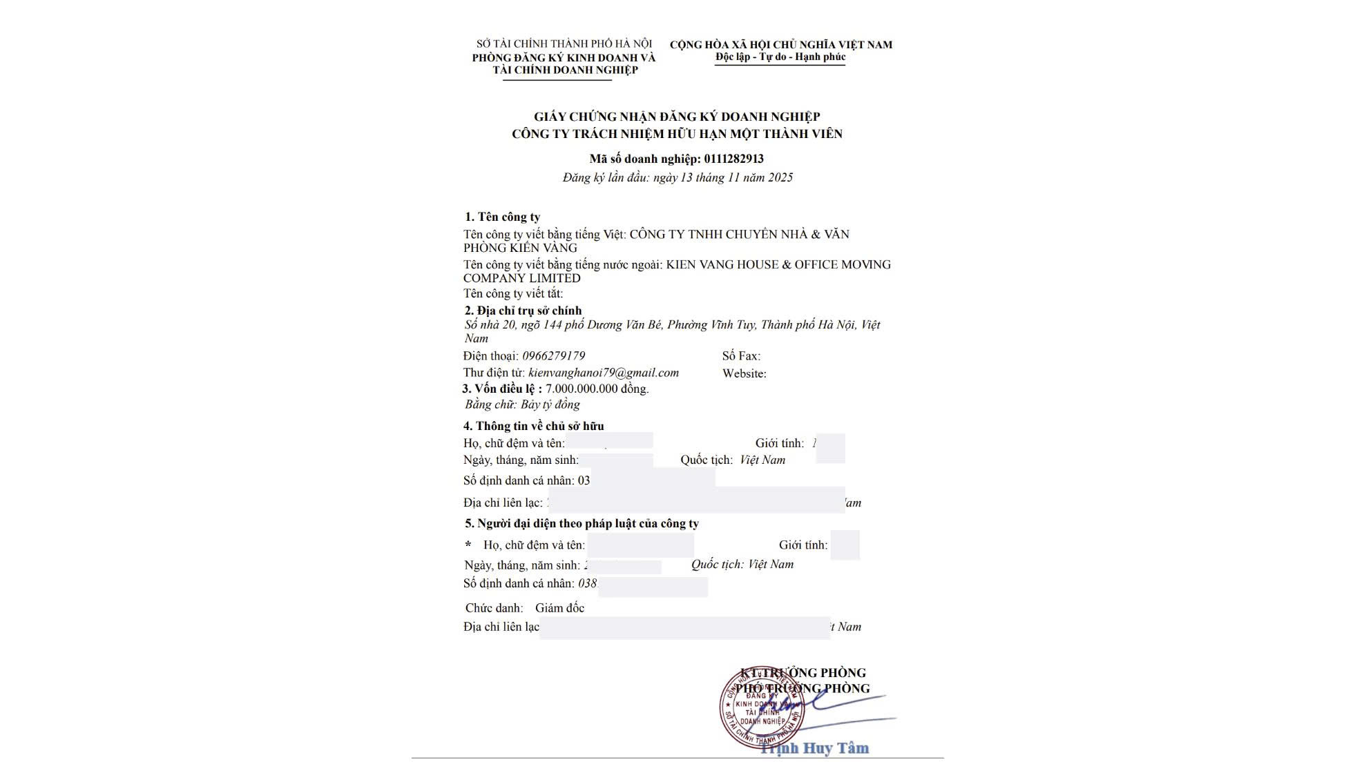 Kiến Vàng Plus hoạt động hợp pháp trong lĩnh vực vận chuyển và dịch vụ liên quan, có đầy đủ hồ sơ pháp lý theo quy định của pháp luật Việt Nam. Thông tin chi tiết được cung cấp khi khách hàng có nhu cầu ký hợp đồng hoặc xuất hóa đơn.